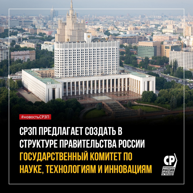 Социалистическая партия "СПРАВЕДЛИВАЯ РОССИЯ –ПАТРИОТЫ – ЗА ПРАВДУ" предлагает создать Государственный комитет по науке, технологиям и инновациям для координации работы органов государственной власти, научного сообщества и бизнеса. По мнению социалистов, такая структура должна заниматься: реализацией стратегии научно-технологического развития страны; формированием национальной инновационной системы; координацией работы по созданию новых технологий и их внедрением в производство.