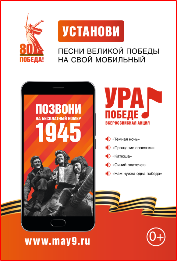 - установить на телефон в качестве мелодии звонка легендарные песни военных лет: «Нам нужна одна Победа», «Темная ночь», «Катюша», «Прощание славянки», «Синий платочек»;