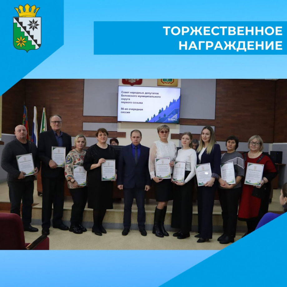 На заседании пятьдесят шестой (очередной) сессии Совета народных депутатов Беловского муниципального округа первого созыва состоялось торжественное награждение.