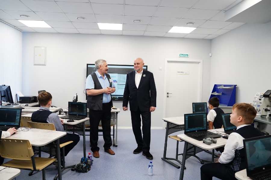 Губернатор побывал в спортзале, в школьной столовой и в учебных кабинетах, послушал репетицию детского оркестра. Также Сергей Цивилев посетил школьный медиацентр «Супер8» и попросил ребят сделать сюжет о его визите.