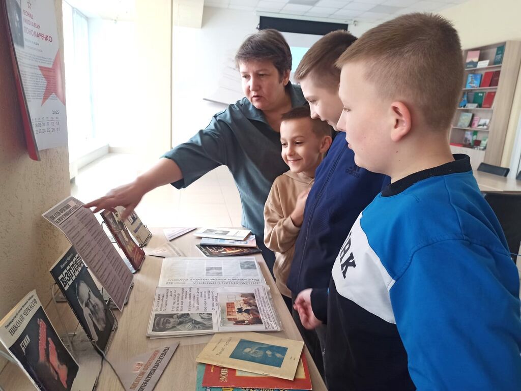 Также была подготовлена книжная выставка «Н. Н. Черкасов – поэт, художник, почетный гражданин г. Юрги», где участники мероприятия подробно познакомились с творчеством писателя фронтовика.
