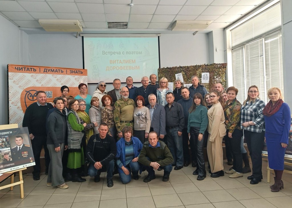 В Кемеровской библиотеке имени Н.В. Гоголя прошла встреча с поэтом и участником специальной военной операции, членом Социалистической партии «СПРАВЕДЛИВАЯ РОССИЯ — ПАТРИОТЫ — ЗА ПРАВДУ» Виталием Дорофеевым.