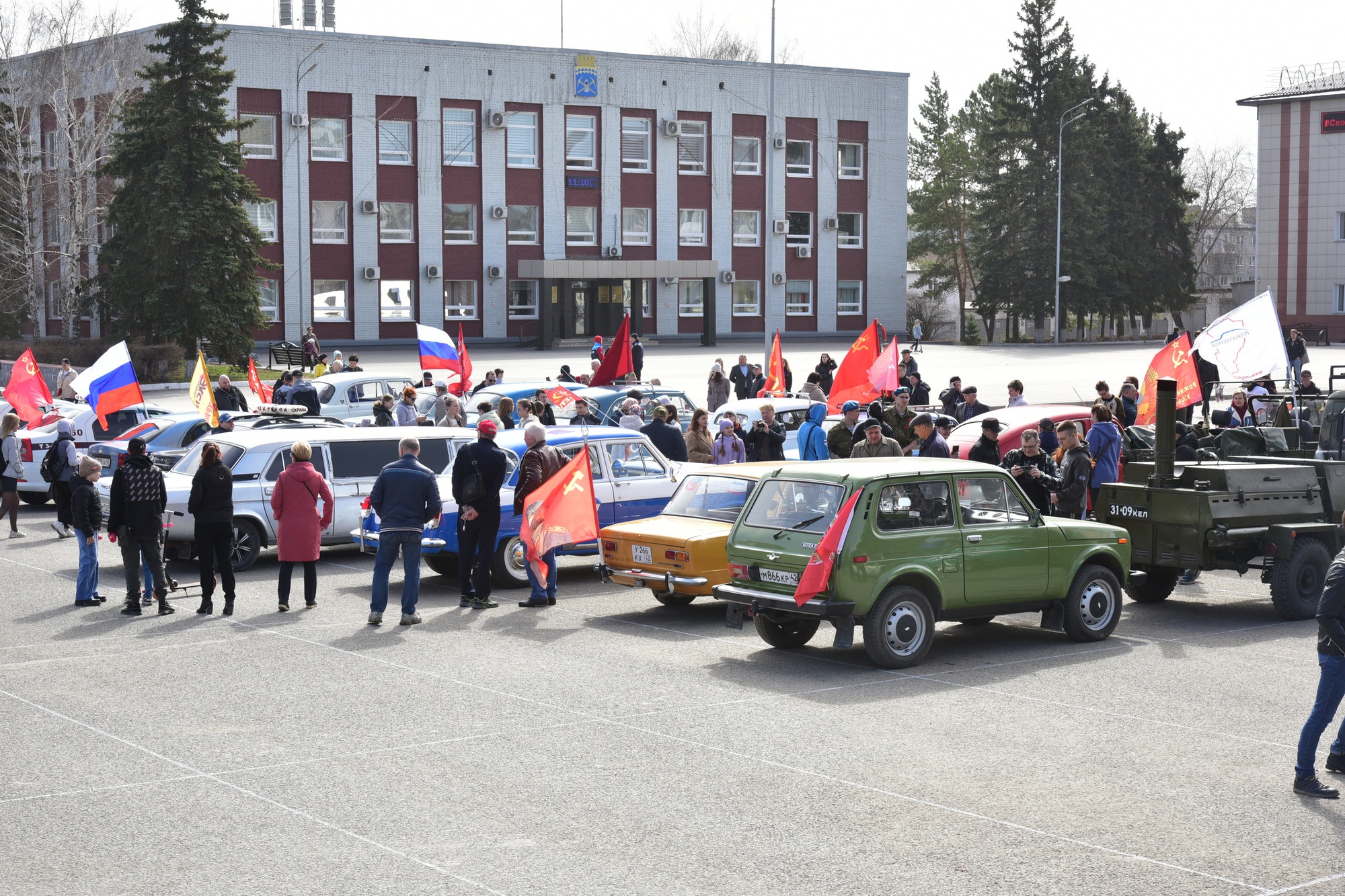 Старт колонне раритетной автотехники был дан в Полысаево. Первым пунктом в маршруте стала остановка уникального кортежа на Центральной площади Белово.