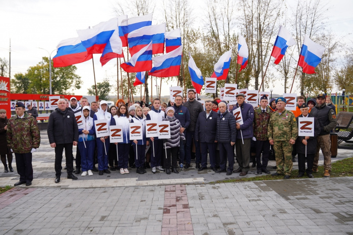 В отправке груза на площади у административного здания завода «Знамя» приняли участие сотрудники и ветераны предприятия, представители общественных организаций, активисты, студенты.