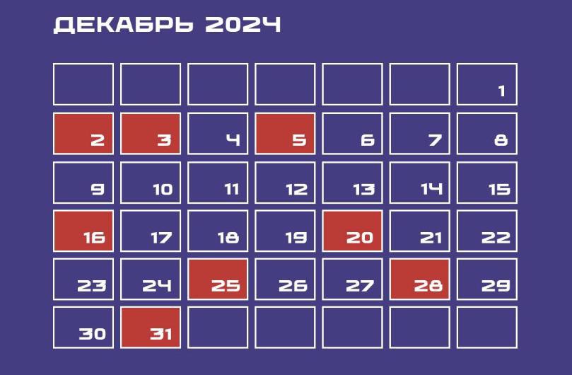 Календарь предпринимателя на декабрь 2024 года