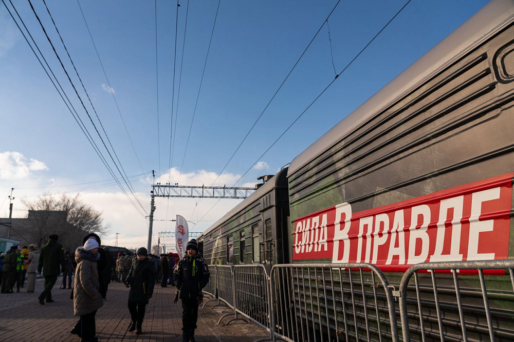 Тематический поезд Минобороны РФ «Сила в правде» отправился по городам России 23 февраля, маршрут составит свыше 34 тысяч километров. До 8 мая акция пройдёт на 75 железнодорожных станциях в 67 субъектах Российской Федерации по маршруту следования поезда. Город Кемерово стал 29-м по счёту в этом патриотическом маршруте, уже завтра поезд будут встречать жители Томска.