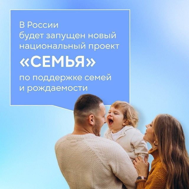 С 2025 года начинается реализация нового нацпроекта «Семья», который состоит из пяти федеральных проектов: «Поддержка семьи», «Многодетная семья», «Охрана материнства и детства», «Старшее поколение», «Семейные ценности и инфраструктура культуры».