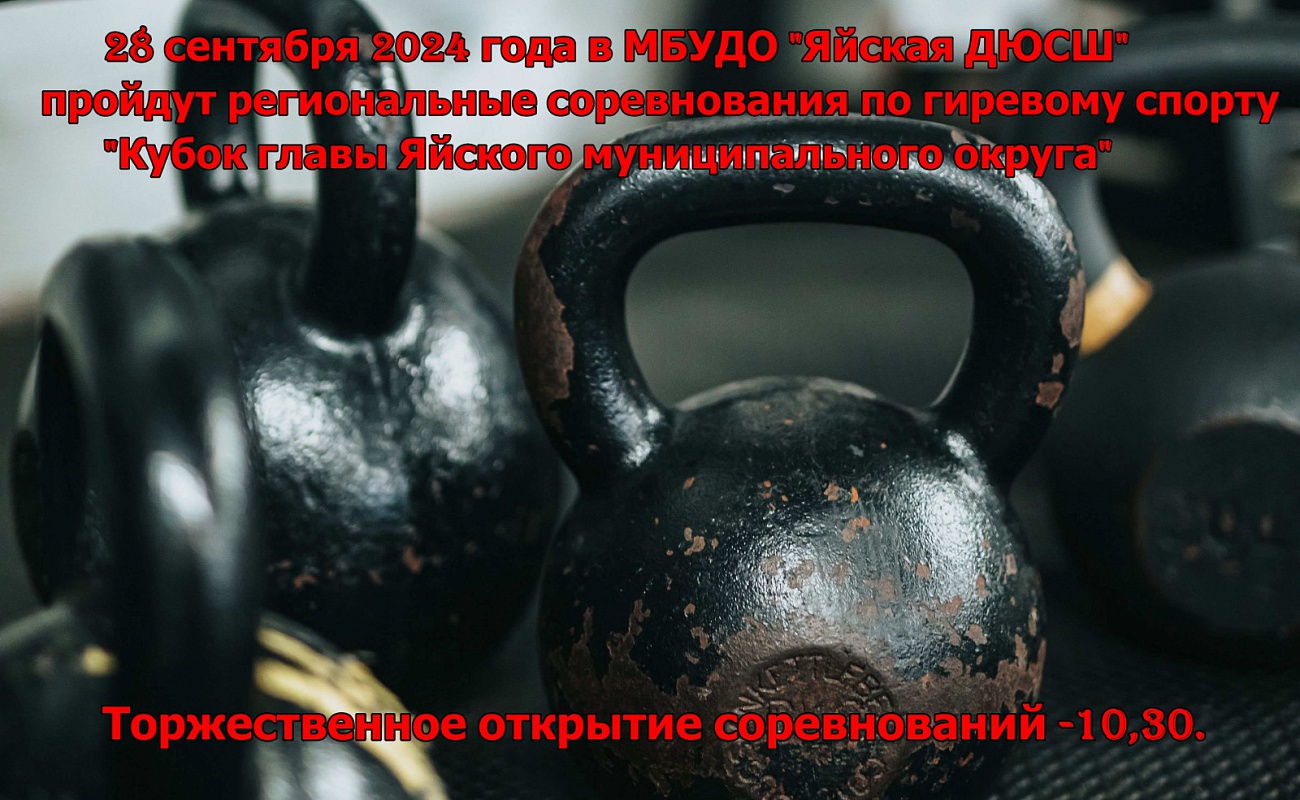 Сообщаем вам, что 28 сентября на базе Яйской детско-юношеской спортивной школы пройдут региональные соревнования по гиревому спорту «Кубок главы Яйского муниципального округа». Это мероприятие будет отличной возможностью для спортсменов показать свои навыки и посоревноваться за призовые места.
