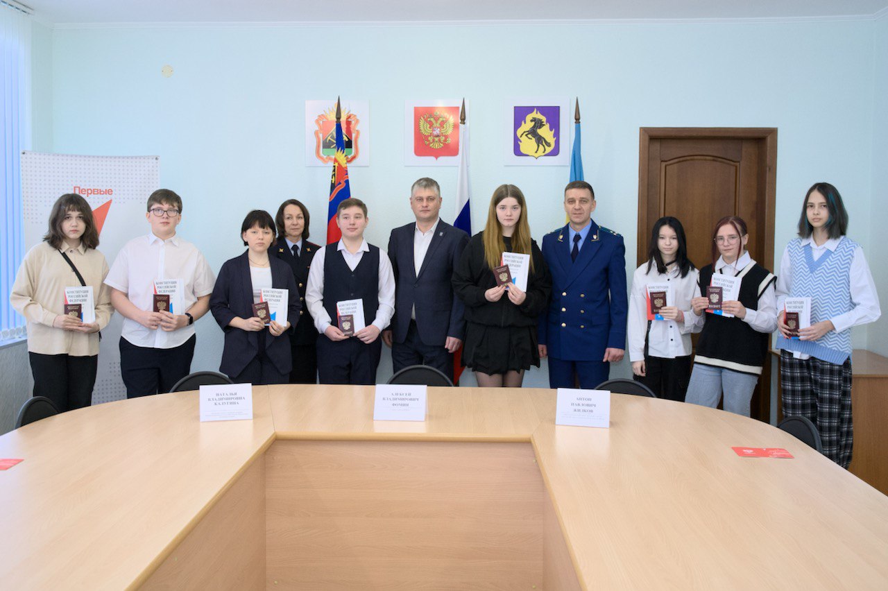 В День Конституции в Юрге состоялась торжественная церемония вручения паспортов. Глава города Алексей Фомин вручил паспорт гражданина России восьми школьникам, которым исполнилось 14 лет.