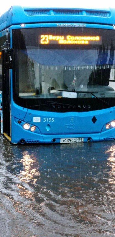 «Везде вода», «улицы затопило», «видимость нулевая», «плывём» — именно так жители города описывают обрушившуюся после тридцатиградусной жары непогоду. Из-за сильнейшего ливня улицы города превратились в реки. Однако автобусы «Питеравто» продолжали работать на линии, чтобы пассажиры могли добраться до безопасного места. Учитывая специфику маршрутной сети, в большинстве случаев организовать объезд затопленных мест было невозможно. Для того, чтобы забрать пассажиров с остановок, водители вынуждены были аккуратно заезжать в наполненные водой участки.