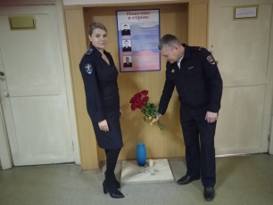 В День памяти погибших при выполнении служебных обязанностей сотрудников органов внутренних дел врио заместителя начальника отдела МВД России – начальника полиции Отдела МВД России по Топкинскому муниципальному округу подполковник полиции Анатолий Сергеевич Геращенко и заместитель начальника отдела - начальник следственного отдела подполковник юстиции Ольга Анатольевна Денисова возложили цветы к мемориальной доске, установленной в главном здании отдела полиции. На ней вписаны имена старшего лейтенанта полиции Альфреда Пфетцера, старшего лейтенанта милиции Александра Колмогорова, старшины милиции Александра Филонова. Живые цветы в день памяти символичны. Это наше отношение к дате, погибшим сотрудникам: мы помним, мы гордимся.