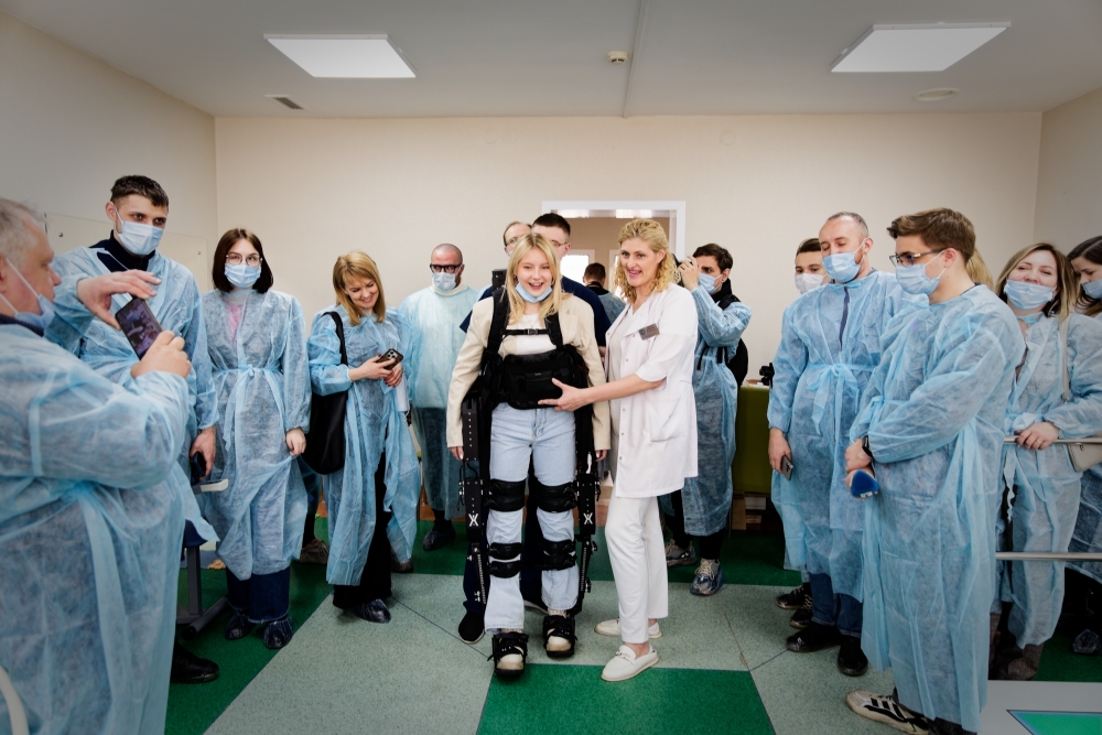 Также гостям показали работу тренировочной виброплатформы Galileo, которая применяется для наращивания мышечной массы после вынужденной иммобилизации. Платформа помогает укреплять мышцы, улучшить кровообращение и повысить координацию. На таком оборудовании медики провели уже свыше 9 тысяч процедур.